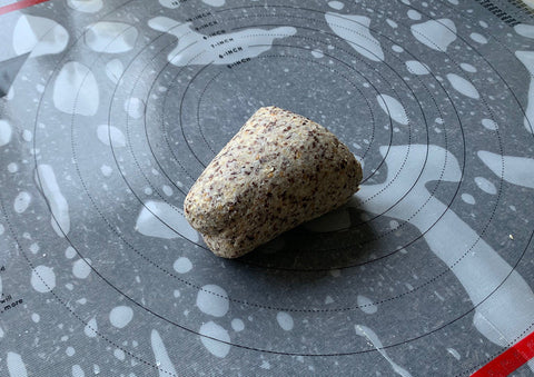 - Pour the wet ingredients into the dry mixture. Use a spatula to mix, then use your hands to form the sticky mixture into a dough.